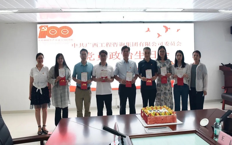 為進一步強化黨員的身份意識、宗旨意識、責任意識和服務意識,在工作中和生活中切實發揮先鋒模范作用,從而進一步增強基層黨組織的凝聚力、戰斗力、創造力,6月11日,廣西工程咨詢集團總部一支部、二支部聯合舉辦主題黨日活動,為9名黨員舉辦集體政治生日會。