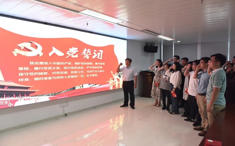 公司黨委書記、董事長、總經理龐漢領誓,全體黨員舉起右拳,重溫入黨誓詞:“我志愿加入中國共產黨······” 錚錚誓言,激勵著廣大共產黨員牢記初心使命,以更加飽滿的熱情投身企業改革發展,切實發揮共產黨員的先鋒模范作用,永葆共產黨員的政治本色。