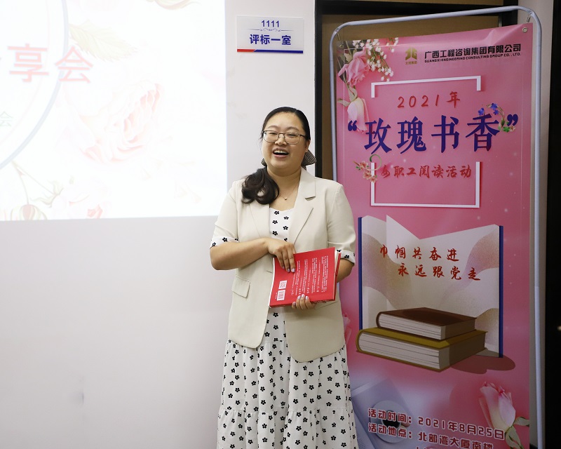 “我不去想是否能夠成功 既然選擇了遠方 便只顧風雨兼程……”8月25日,廣西工程咨詢集團2021年“玫瑰書香”女職工讀書分享會現場,公司女職工通過詩歌朗誦表演、誦讀紅色家書、推薦好書、分享閱讀感悟等形式踴躍參與活動,營造濃郁書香文化,展現新時代巾幗風采。公司黨委書記、董事長、總經理龐漢為活動紀念品定制版書簽題寫寄語,向女職工送上祝福。
