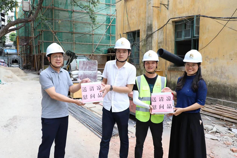 南國(guó)盛夏,高溫酷暑。廣西工程咨詢集團(tuán)有限公司組織深入玉林、南寧的工程咨詢項(xiàng)目一線開(kāi)展“夏送清涼”慰問(wèn)活動(dòng)。左俊蘭、姚遠(yuǎn)到南寧項(xiàng)目送清涼。