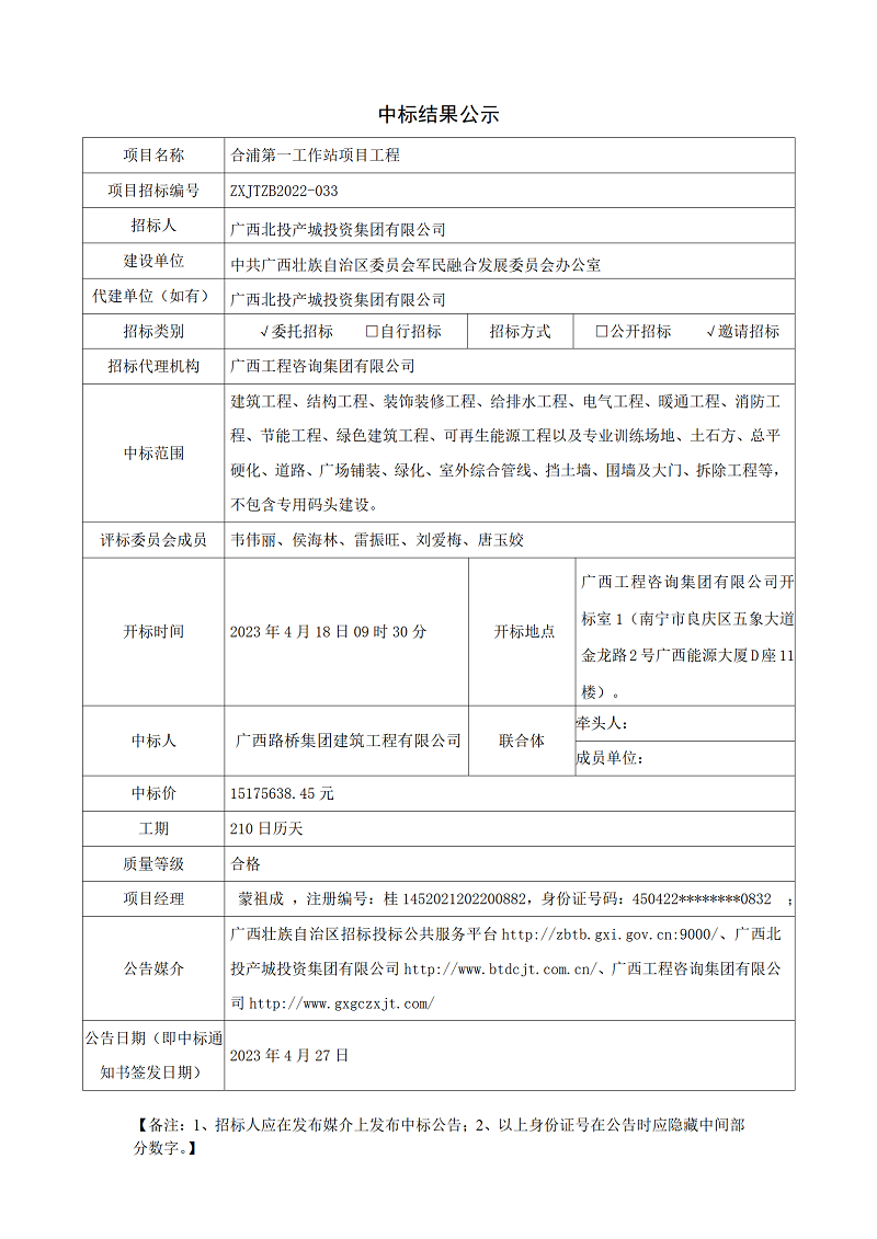 中標結果公示