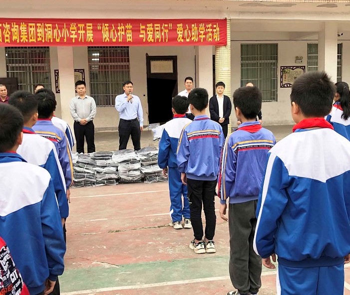 4月14日,廣西工程咨詢集團有限公司到陸川縣溫泉鎮(zhèn)洞心小學開展“傾心護苗 與愛同行”愛心助學志愿服務活動。自治區(qū)黨委辦公廳國安處處長、洞心村第一書記蔣士圳,陸川縣人大常委會副主任王秀輝,公司副總經(jīng)理姚遠,溫泉鎮(zhèn)人民政府鎮(zhèn)長陳東出席活動。溫泉鎮(zhèn)中心小學校長朱偉雄主持活動。