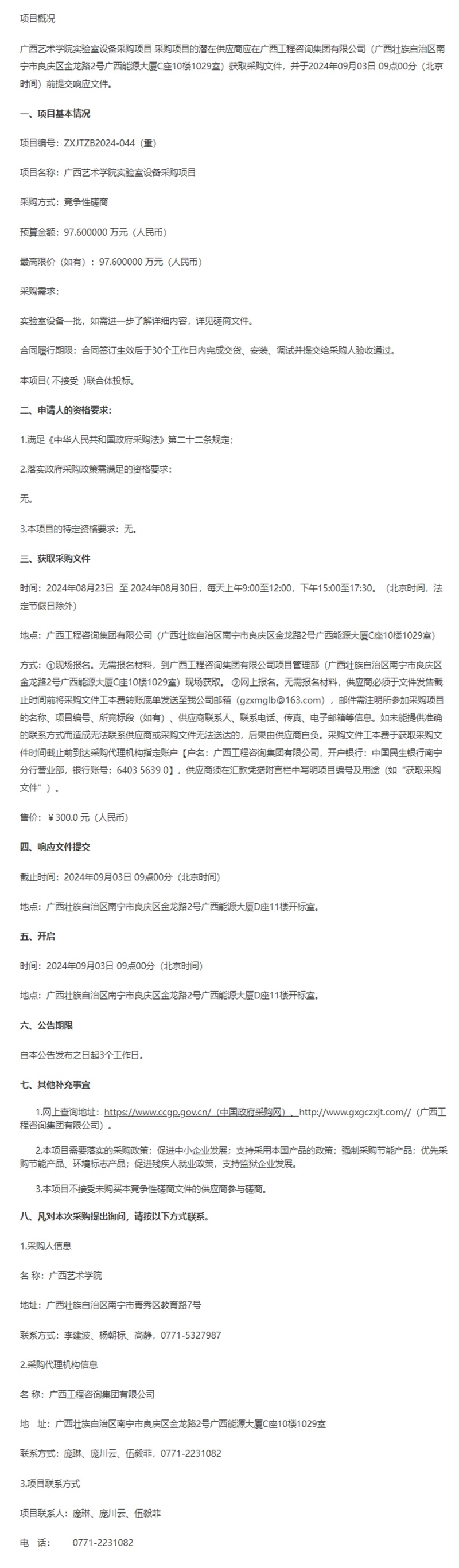 廣西藝術學院實驗室設備采購項目競爭性磋商